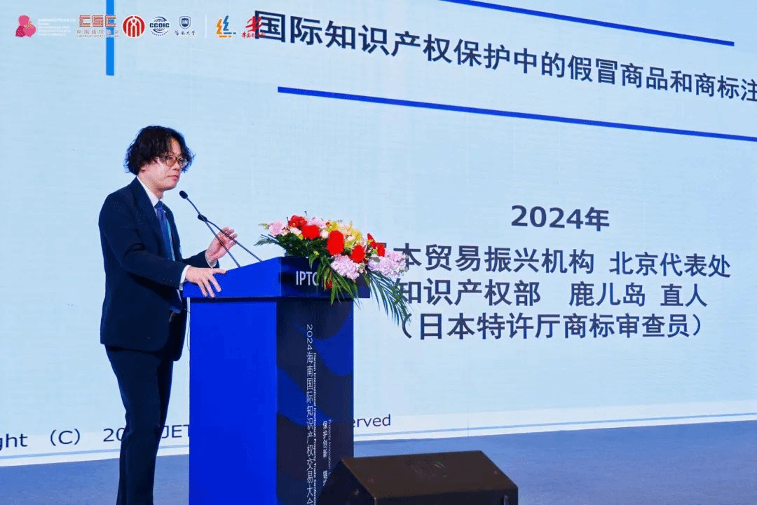 日本贸易振兴机构北京代表处知识产权部副部长鹿儿岛直人,就“国际知识产权保护中的假冒商品和商标注册”发表了主题演讲。从现状分析入手,提出“假冒商品是一个国际问题”,呼吁重视“恶意商标和商标注册要求的问题”。