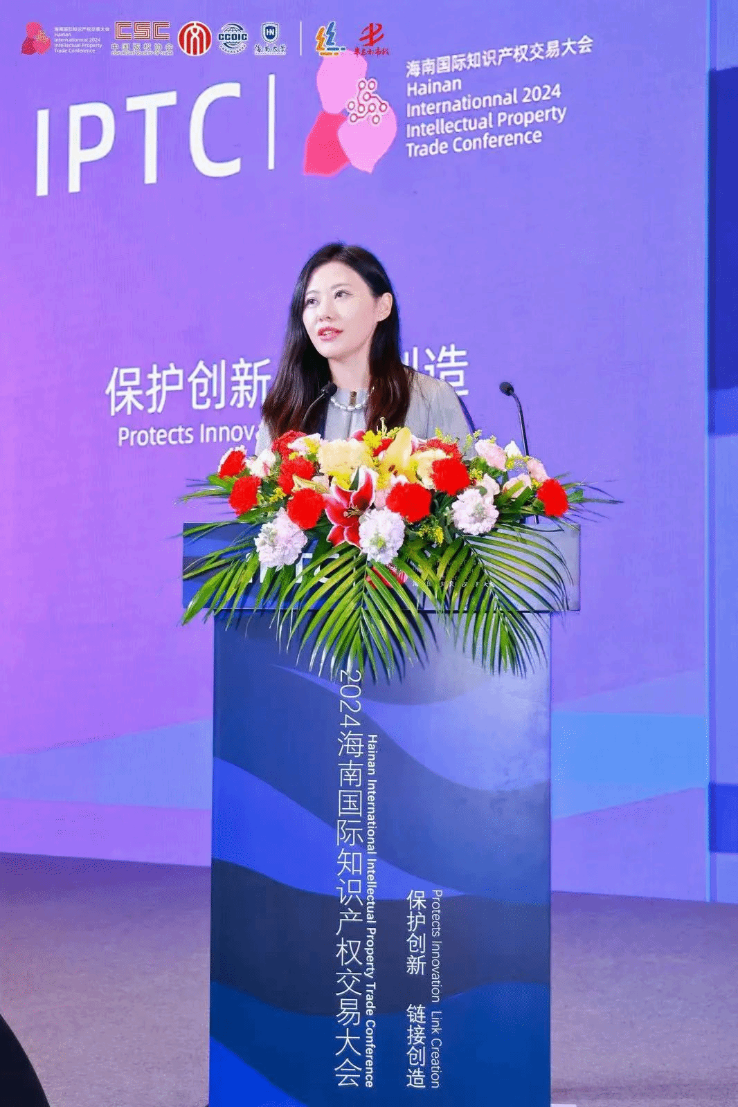 在上午进行的主旨演讲中,海南自由贸易港知识产权法公司党组成员、副经理刘冠兵,从“为创新而生,肩负创新使命;护创新而行,助推新质生产力发展;循创新而进,将改革向纵深推进”等三个方面,介绍了海南自贸港知识产权法院在服务保障中国特色自由贸易港建设、加大知识产权司法保护力度,营造良好营商环境方面的工作。