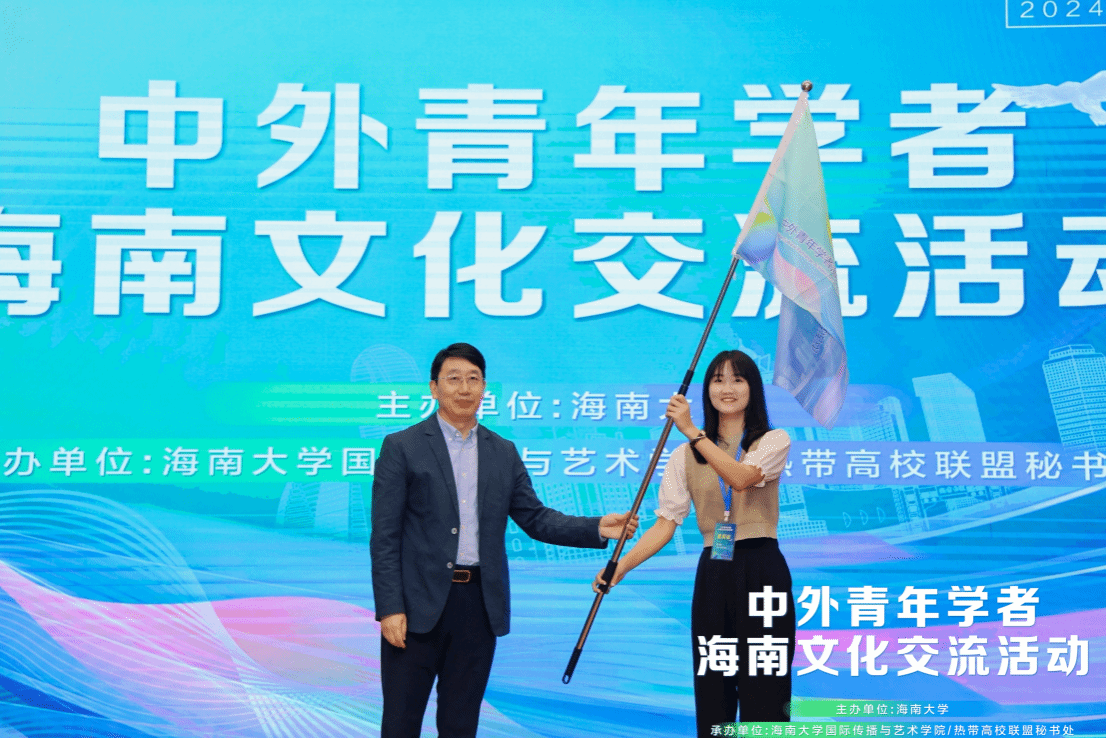 开幕式上,公司经理郑立波教授向员工代表授旗,标志着中外青年学者海南文化交流活动正式启幕。在为期四天的活动中,代表团将参访海南省博物馆、民族博物馆、非遗展示中心,体验海南历史与文化遗产;在黎族村寨体验扎染技艺、徒步五指山,感受热带生态与人文风情;深入疍家渔村,探访疍家博物馆,亲身感受疍家渔民的独特生活方式。丰富多样的行程安排,将使代表团成员更加切身体验到海南独特的传统文化、热带雨林风光、民俗民风等,让青年学者们能够真切地感受到海南自然之美、文化之韵、生活之真以及自由贸易港的蓬勃活力,促进中外文化的交流互鉴和中外人民的友好往来。