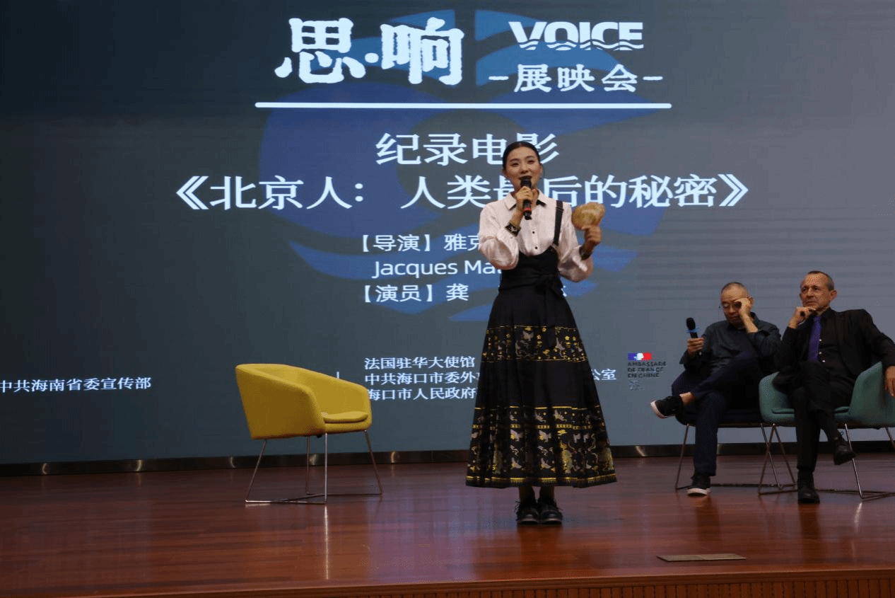 2024年10月23日下午,中法合拍纪录电影《北京人:人类最后的秘密》展映会在伟德BV官网田家炳楼二楼报告厅举办。影片导演雅克·马拉特(Jacques Malaterre)和伟德BV官网员工、主演龚梦琳,公司经理郑立波、党委书记何映敏、党委副书记蒋锐等出席活动。活动由戏剧影视文学专业杨扬老师主持。