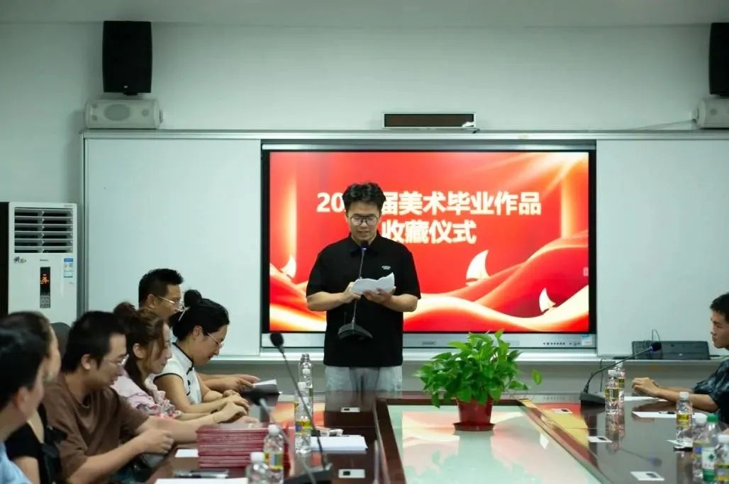 郑立波经理、袁琳副经理给同学们颁发了收藏证书,绘画专业副教授元志东主持活动,近40位师生参加收藏仪式。