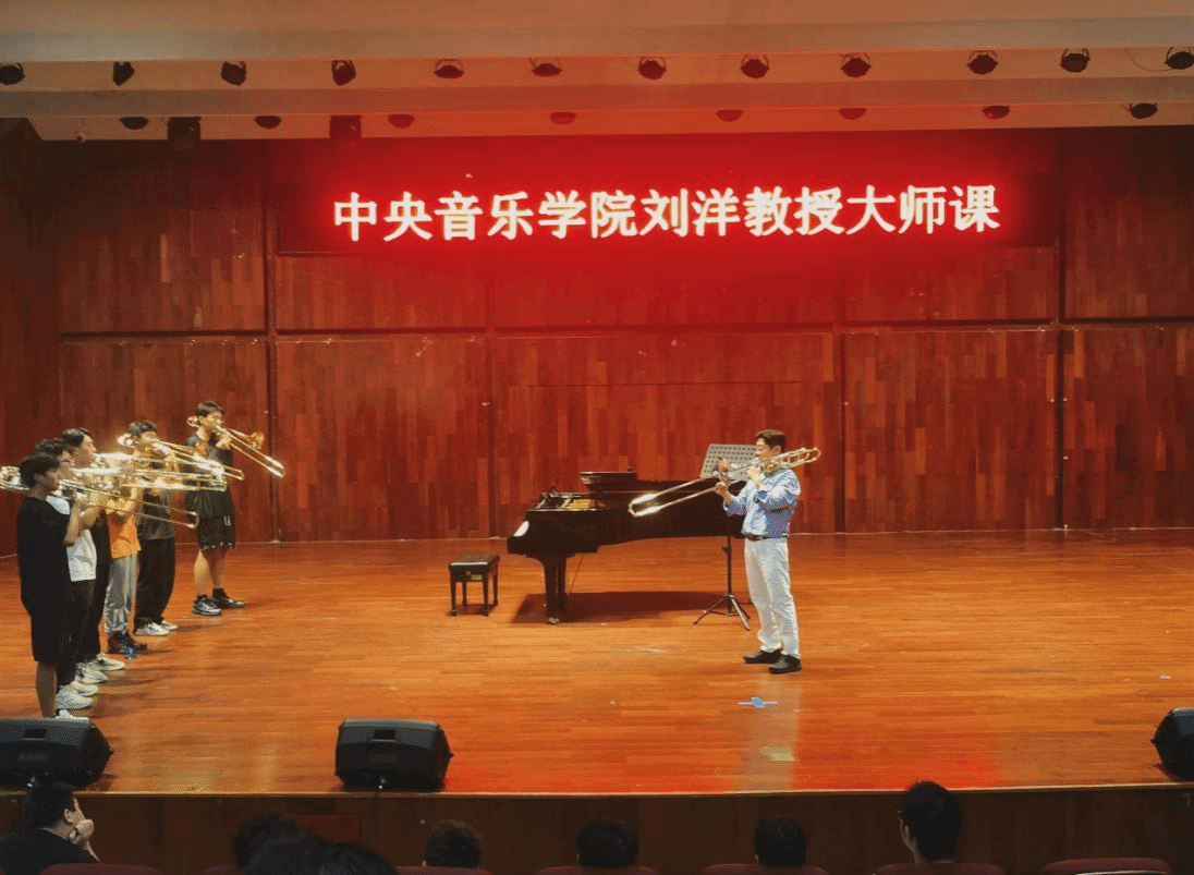 大师课上,刘洋教授带领同学们进行气息训练,用心传授吹奏技巧。期间,他对公司学子的专业水平给予了高度评价。凭借丰富的演奏经验和深厚的专业素养,刘洋教授为参加本次讲座的师生们带来了一场号声跃动的知识盛宴。