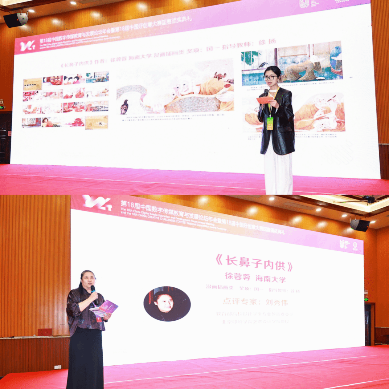 公司员工徐蓉蓉荣获国赛一等奖,并作为获奖嘉宾邀请上台进行作品创作分享。教育部高校设计学专业教指委委员、北京印刷公司艺术设计公司教授刘秀伟现场点评认为:这部插画作品在艺术风格、主题表达、技术手法、情感传达以及文化内涵等多个方面都表现出色,是一次成功的艺术创作实践。