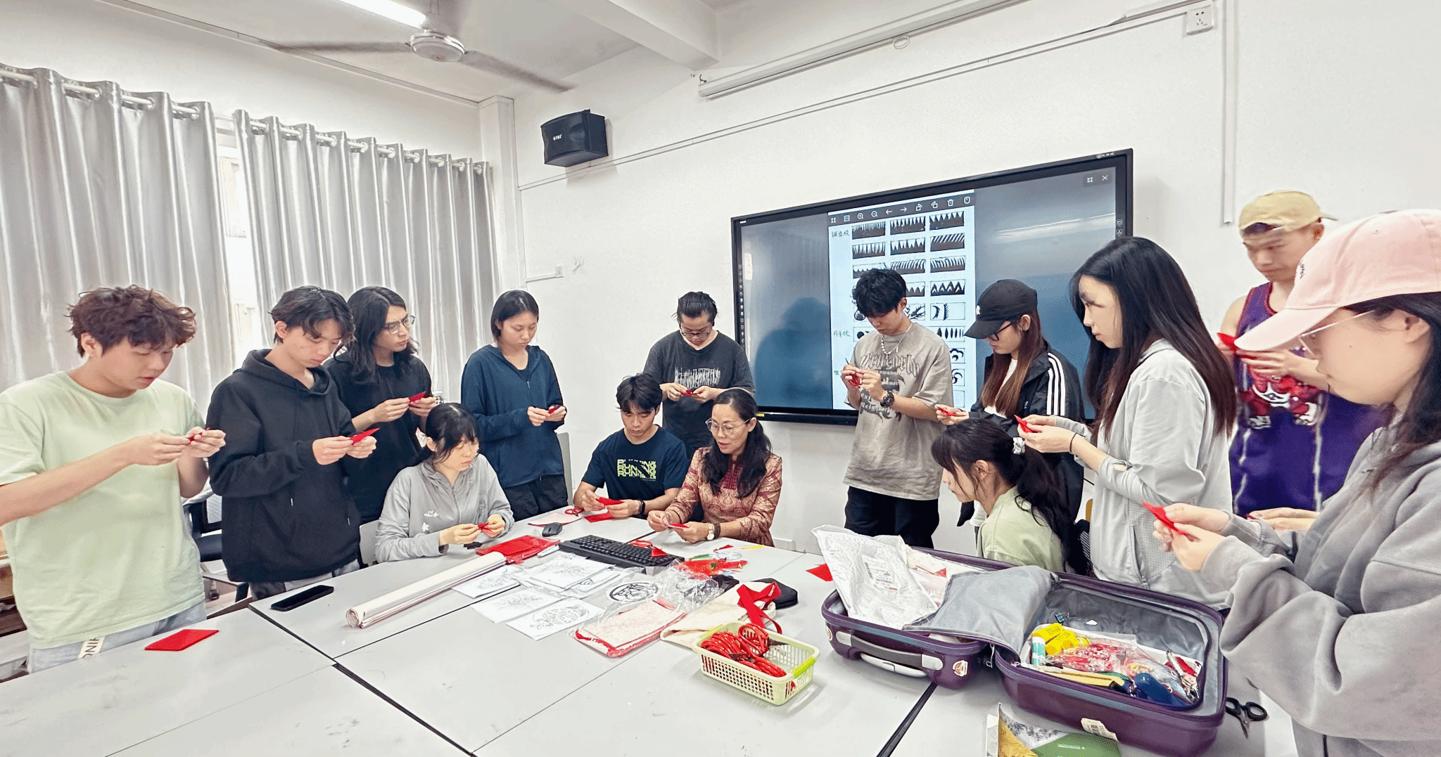 2025年3月26日下午,海南省剪纸学会会长、省级工艺美术大师、非遗传承人黄海桃应邀走入公司设计系大三课程—《旅游产品设计与制作》的课堂,与课程主讲教师张哲共同探索了剪纸艺术与海南文旅设计的融合路径。课程以“非遗活化+设计创新”为核心,通过理论讲授、技艺示范与创作实践,引导员工挖掘剪纸语言的地域表达潜力,现场气氛热烈。