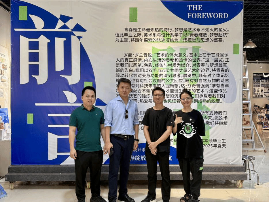 6月5日下午,海口市旅游商品与装备协会会长郗志强、秘书长陈勇周及海流文化创意设计有限公司负责人陈明智一行参观公司2025届设计系本科毕业展。副经理元志东、实验室与设备管理中心孙焱老师、综合办于东平老师、设计系方星星老师陪同参观并讲解。