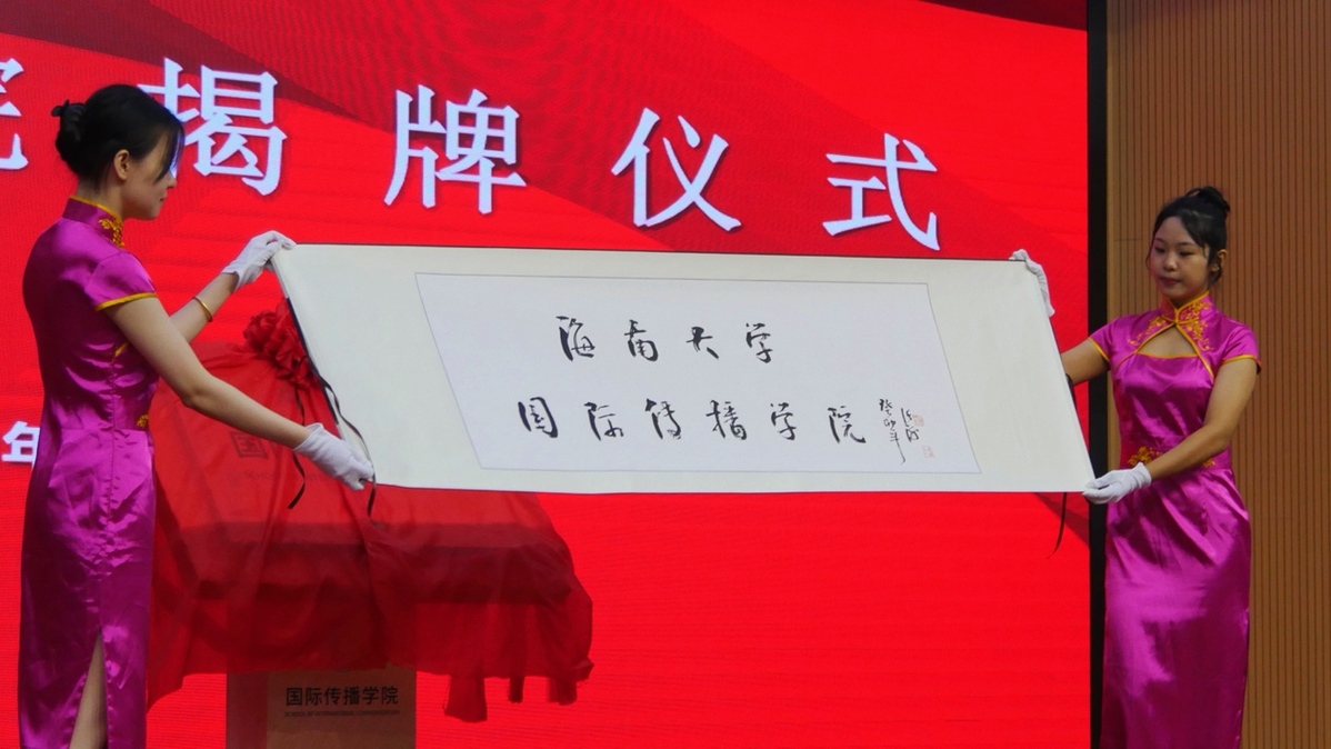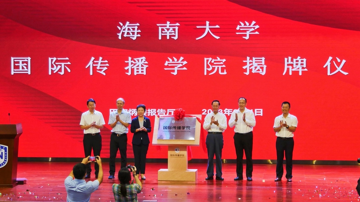 海南省委宣传部副部长蒋建民,海南省教育厅党委书记曹献坤,新华社海南分社社长陈良杰,伟德BV官网党委书记符宣国,党委常委和校领导高佃恭、韩淑梅、谭勇出席,国际传播公司全体师生参加揭牌仪式。