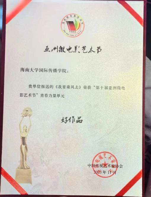 2023年11月24日至26日,第十届亚洲微电影艺术节在云南省临沧市举办,伟德BV官网国际传播公司2020级戏影专业员工团队凭借作品《我要乘风去》,获得了青春力量单元“好作品”奖,展现出扎实的专业素养和创作基础,也是公司践行培养具有国际视野、创新思维和实践能力的优秀影视人才的体现。