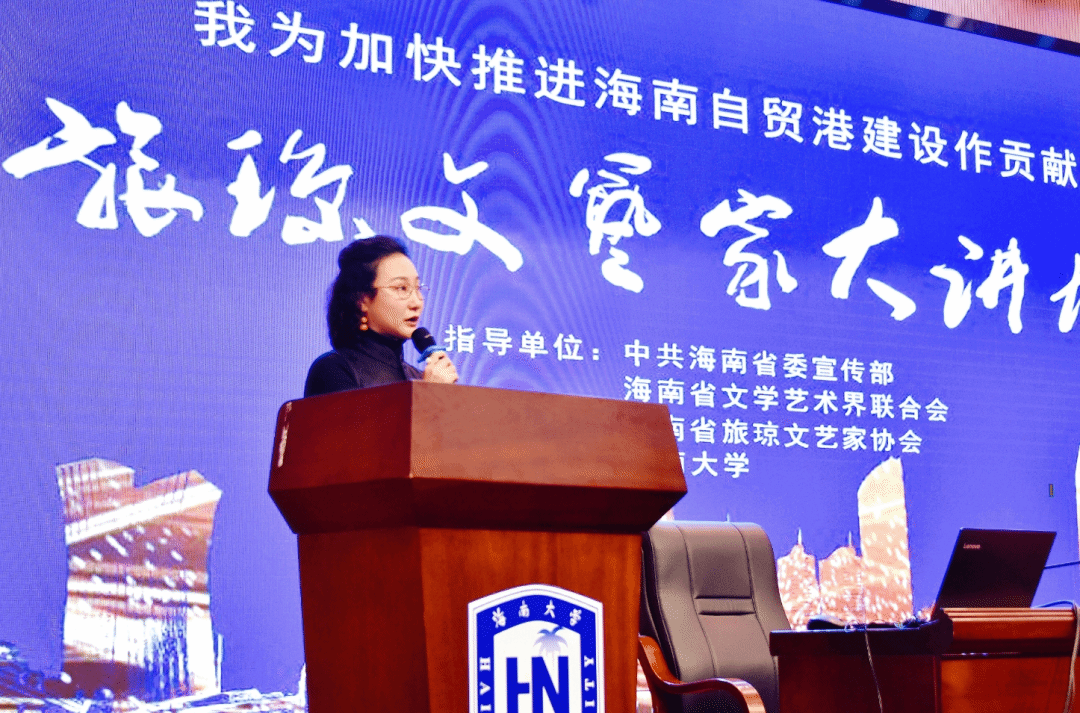 伟德BV官网党委书记符宣国、常务副书记张继友,海南省文联专职副主席王艳梅出席讲座。海南省舞蹈家协会副主席、伟德BV官网副经理周琳琳主持讲座。