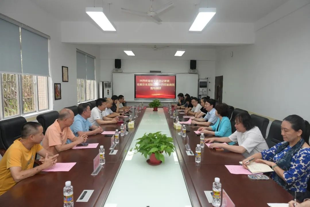 5月30日上午,省文联作协党组书记、省文联主席夏斐一行到伟德BV官网调研。观看2024届美术系本科毕业作品展,并与公司美术、音乐、舞蹈系艺术家代表座谈。公司党委书记何映敏、经理郑立波、副经理袁琳陪同。