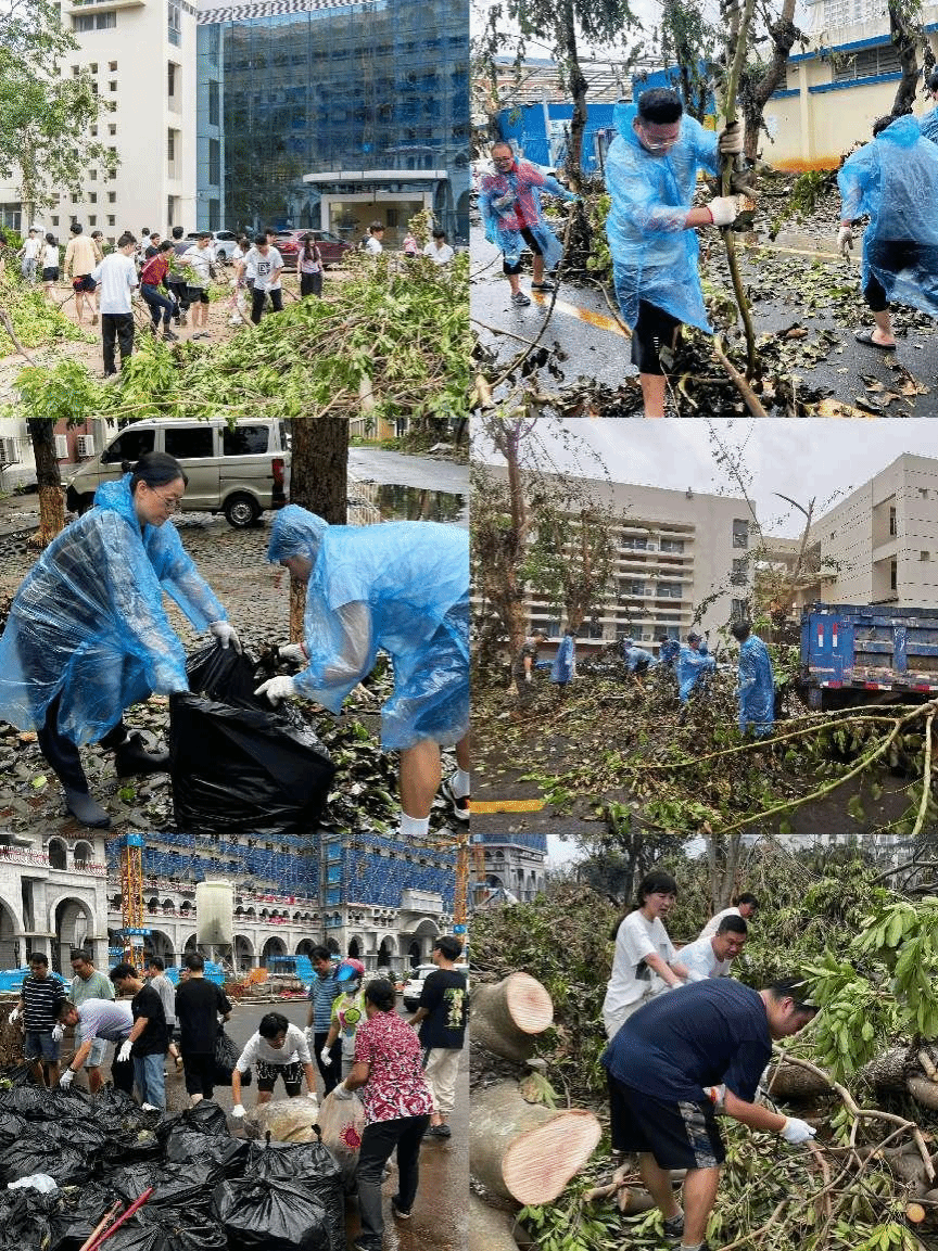 本站讯(通讯员 李政)今年第11号超强台风“摩羯”正面袭击我省,造成严重灾害,海大校园也受到了重创,尤其是基础设施受灾严重,房屋受损、树木倒伏,道路瘫痪。国际传播与艺术公司党委积极响应公司党委号召,第一时间组织党员先锋队,带领公司教职员工志愿者及员工志愿者开展灾后重建工作,清理田家炳楼、艺术大楼及周边,为共“净”校园,全力以“复”。