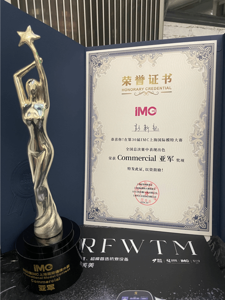2024年10月15日晚,第三十届IMC上海国际模特大赛总决赛在时尚之都上海举办,聚集了全国各地优秀年轻面孔共同诠释时尚、拥抱自由。经过激烈角逐和专家评审,公司2021级服装表演专业彭新钰同学荣获“Commercial 亚军”称号。