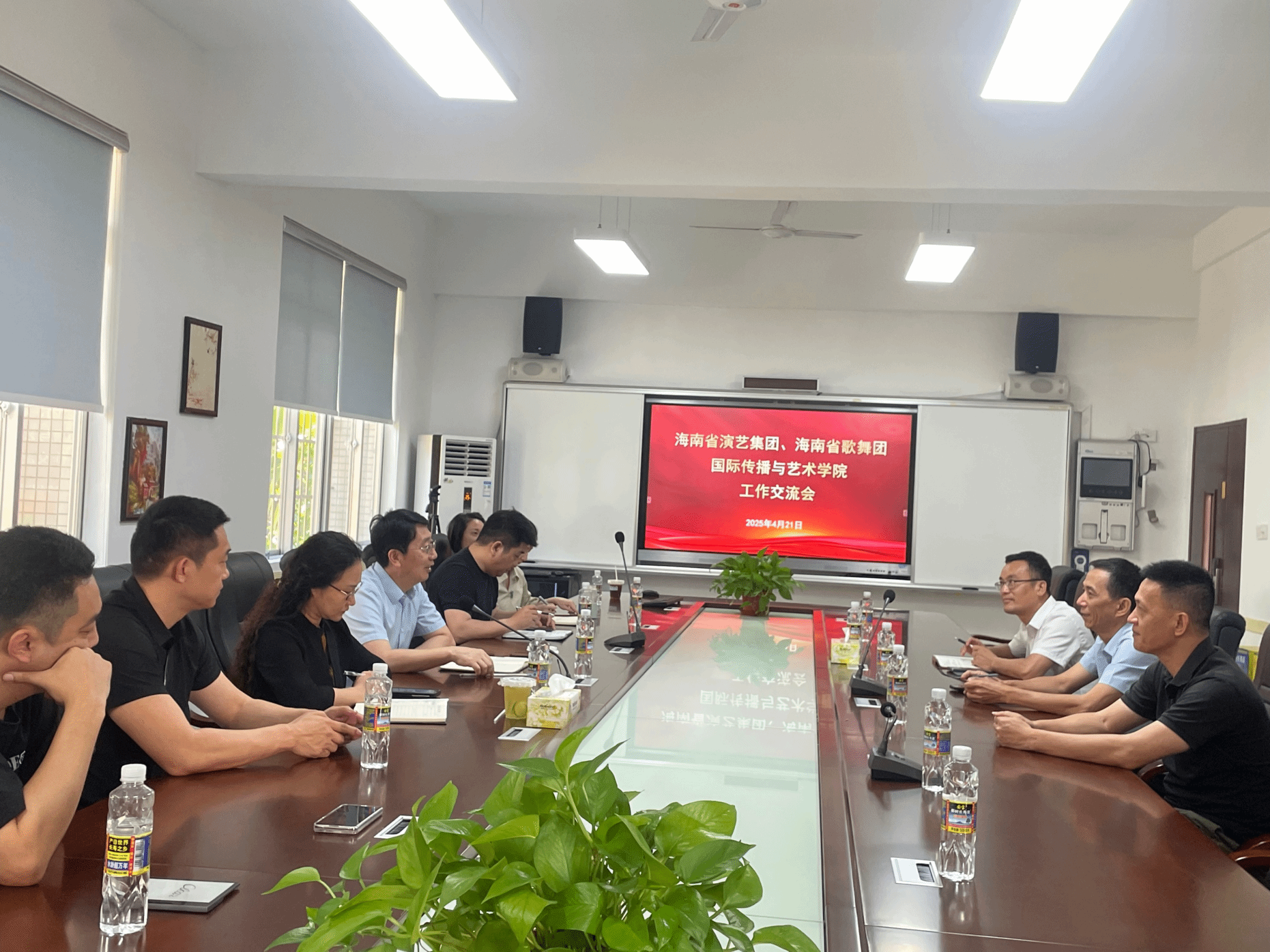 4月21日,伟德BV官网、海南省演艺集团围绕校企协同创新、非遗文化传承、产学研融合等议题召开工作交流会,达成多项合作共识。公司经理郑立波、副经理周琳琳及教师代表,海南省演艺集团党支部书记、副团长王涛、副团长、工会主席陈仁华、副团长周克刚参加会议。