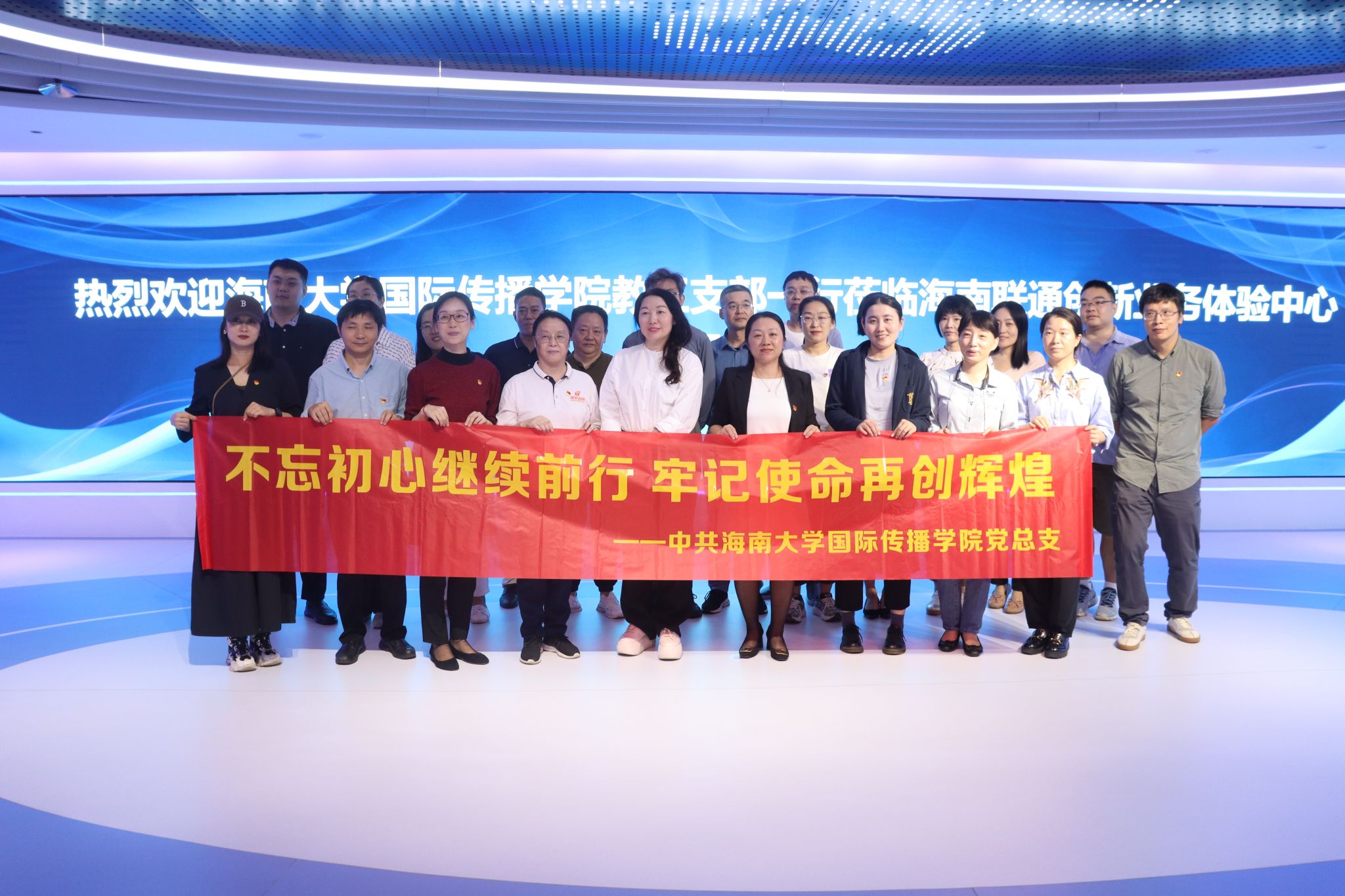为深入学习贯彻习近平新时代中国特色社会主义思想,扎实开展主题党日活动,2023年10月24日下午,伟德BV官网国际传播公司教工党支部全体党员及群众代表赴海南联通智慧大厦党建馆和科技馆开展主题党日活动。