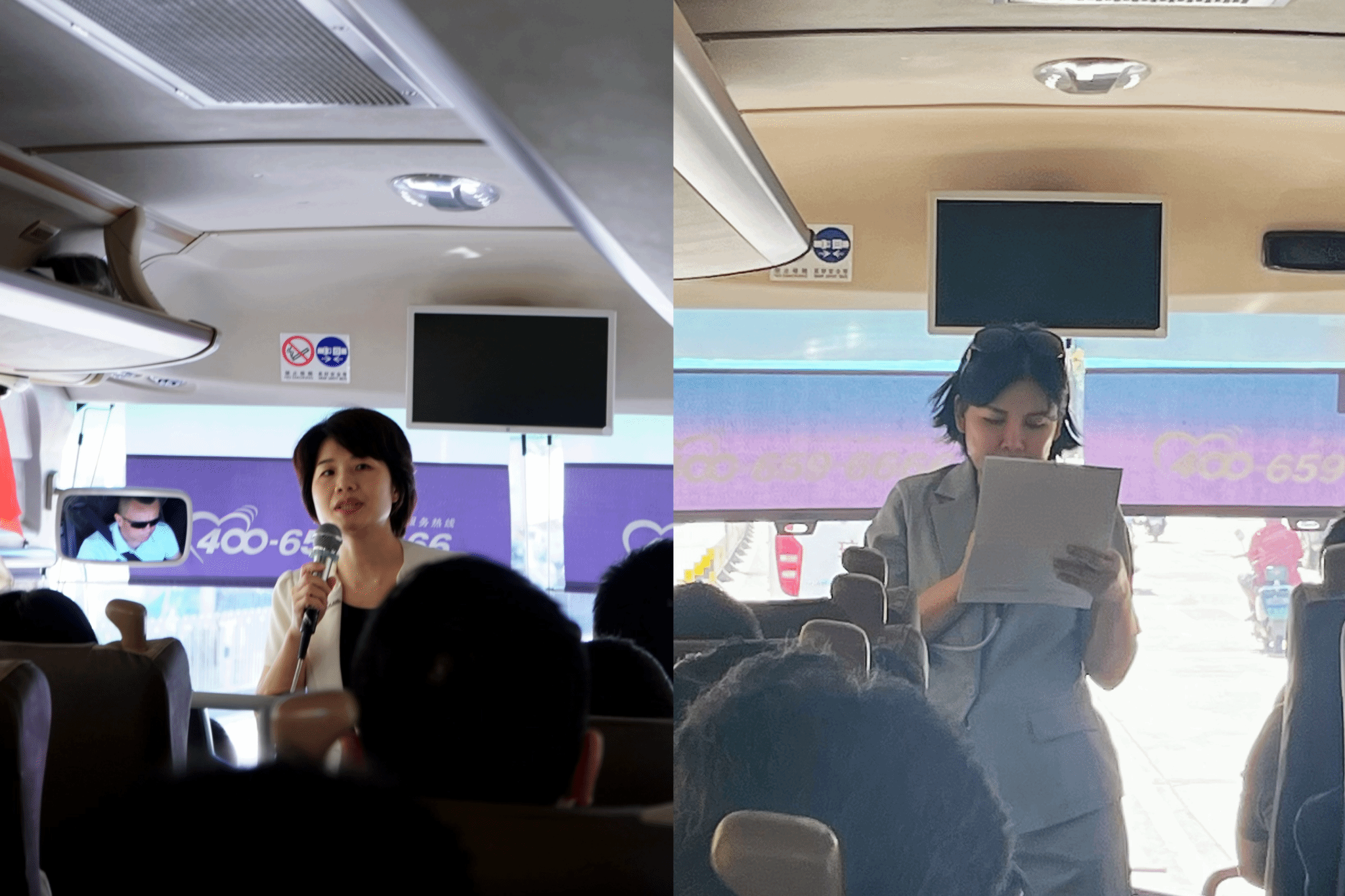 在车上,何映敏书记先简略介绍了王海萍烈士和海瑞的生平事迹,并向全体党员传达了《2024年二级党委(党总支)党建工作任务书》的文件精神。纪检委员许潇尹也给大家做了警示教育。