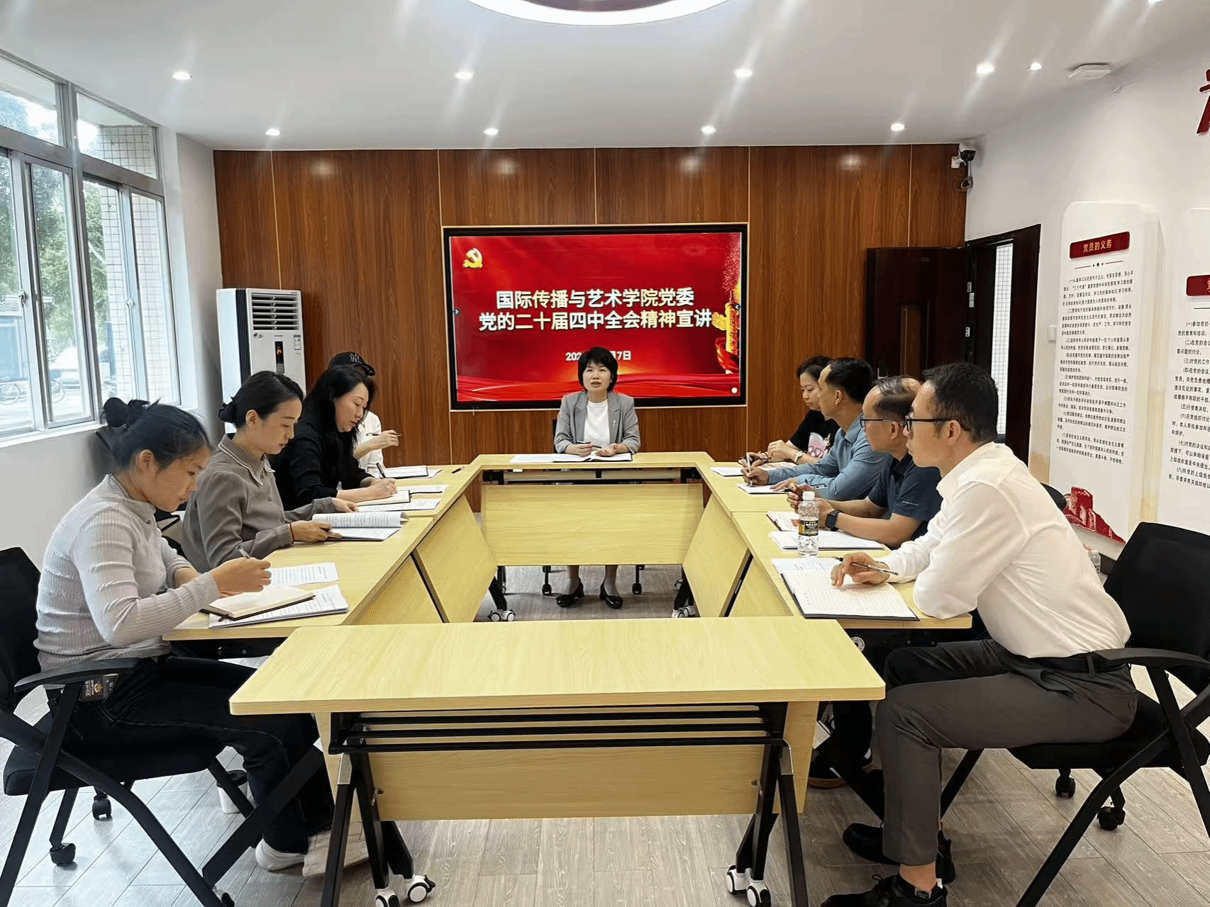 公司党委书记何映敏同志在理论学习中心组(扩大)会议进行宣讲并强调,党的二十届四中全会是在全面建设社会主义现代化国家新征程关键时期召开的重要会议,全院各党支部,全院师生要认真学习贯彻四中全会精神。全会提出的“扩大高水平对外开放,开创合作共赢新局面”“激发全民族文化创新创造活力,繁荣发展社会主义文化”等部署要求,与公司培养传播与艺术领域具有"国际化视野、扎实理论基础、创新实践能力"的复合型人才的办学定位紧密契合,为公司办学指明了方向。作为肩负文化传播使命的教育工作者,把全会精神融入立德树人全过程,既教会员工精湛的艺术技能,更要培育他们坚定的文化自信,让他们成为兼具艺术素养与国际视野的文化传播使者。
